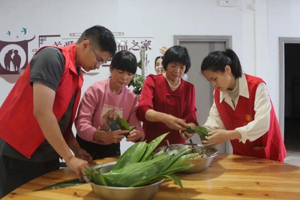 捋粽葉、填糯米、加餡料、卷粽葉、纏粽繩……居民群眾歡聚一堂,齊動手、共參與,這是最近常常出現(xiàn)在各個鄉(xiāng)鎮(zhèn)的熱鬧場景。高考前夕,在龍門鎮(zhèn),志愿者走進龍門中學,和高二的學生們一起包粽子,為高考生提振士氣,預?!案唪铡?。在金谷鎮(zhèn),一場包粽子大賽熱烈又溫馨,評選出了最佳口味獎、最佳外觀獎、最佳創(chuàng)意獎和參與獎。在魁斗鎮(zhèn),志愿者將包好的新鮮粽子送給困難群眾,送上節(jié)日祝福。在城廂鎮(zhèn),志愿者通過分發(fā)宣傳單,向群眾講解反詐騙、移風易俗等知識,進一步提高轄區(qū)群眾安全意識。