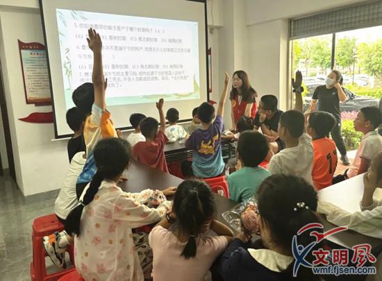 孩子們積極參與圍繞端午節(jié)習(xí)俗的知識(shí)問答(五通社區(qū)供圖)