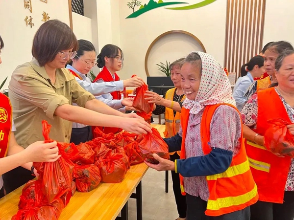 螺城鎮(zhèn)新霞社區(qū)將新鮮出爐的粽子分發(fā)給社區(qū)環(huán)衛(wèi)工人。螺城鎮(zhèn) 供圖