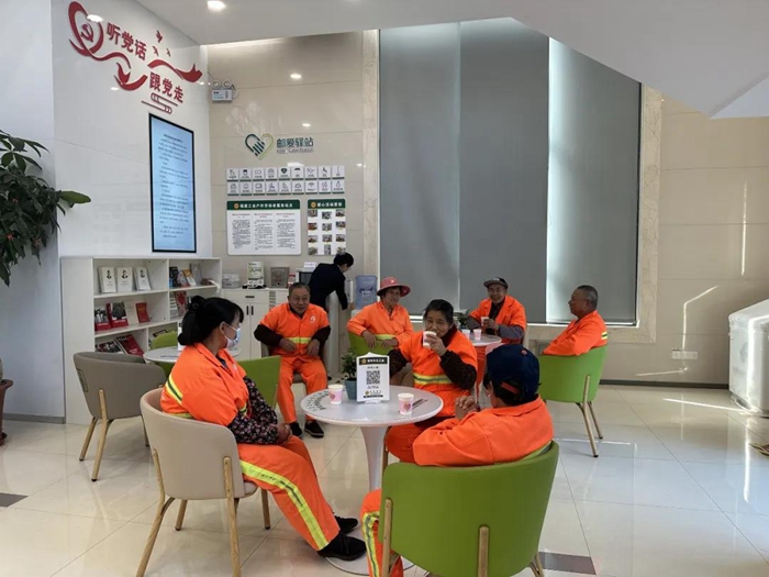 環(huán)衛(wèi)工人在驛站休憩。許伯英 供圖