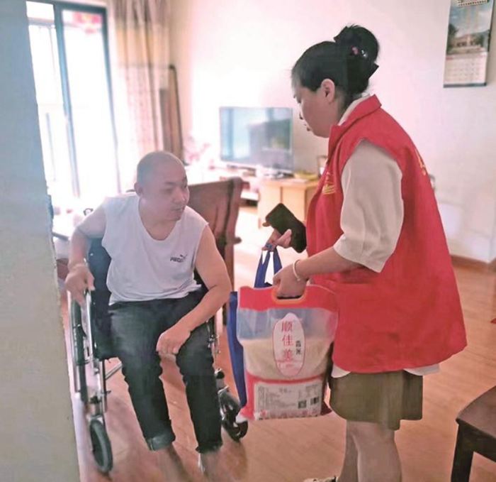 社區(qū)志愿者為陳雄雨購(gòu)買生活必須品
