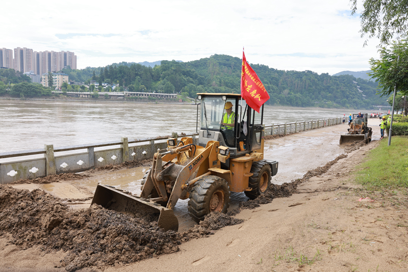 在親水漫道上,志愿者們有的手持土鍬、鋤頭和鏟子等工具清理淤泥、積水,有的將垃圾地毯式清理,集中清運(yùn),即便淤泥沾上了衣褲、汗水浸濕了衣裳,但志愿者們發(fā)揚(yáng)“水退人進(jìn) 不嫌臟累”的沖鋒精神,個個精神抖擻、干勁十足。在他們身后,消防隊員們、沿街商戶群眾也提著水槍,加入沖洗路面工作。經(jīng)過不辭辛勞的努力殘留下的淤泥和垃圾基本被清理干凈,親水平臺也逐漸恢復(fù)了原來的模樣,幫助市民群眾早日恢復(fù)生產(chǎn)生活。