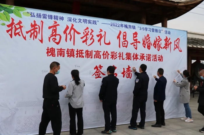 永安市槐南鎮(zhèn)舉行抵制高價彩禮集體承諾簽名活動。