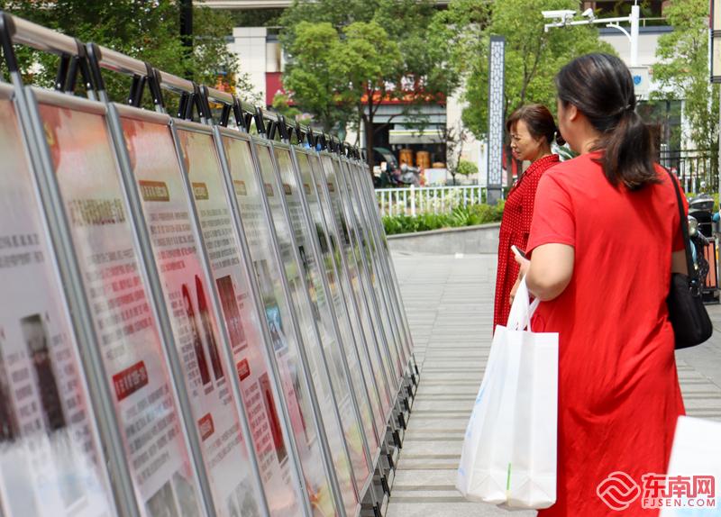 市民駐足觀看學(xué)習(xí)閩北革命歷史宣傳板