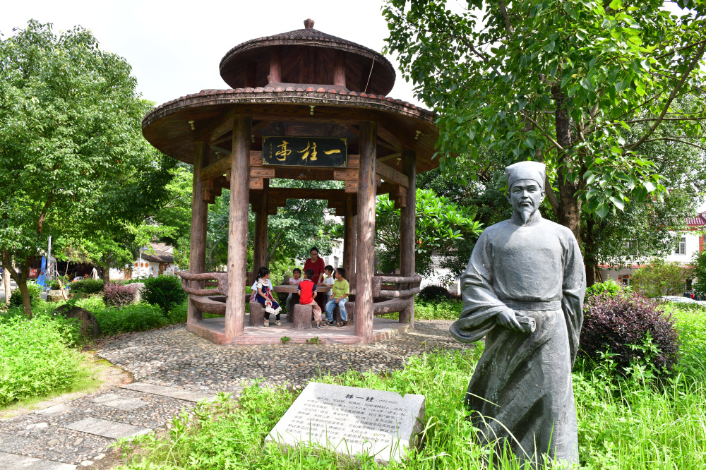 在溪林村走馬人里自然村的村口,林一柱的雕像長身而立、不怒自威,當(dāng)?shù)匾粤忠恢示訛檩d體,打造了林一柱紀(jì)念館。古厝掩映在草木蒼翠之間,推門而入,“洗心”石躍入眼簾,林一柱像坐于堂上,威風(fēng)凜凜,嚴(yán)肅莊重。