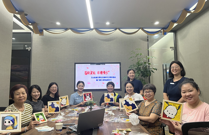 芝山街道甘棠社區(qū)新時(shí)代文明實(shí)踐站攜手廈門(mén)銀行漳州金峰支行舉辦創(chuàng)意手工紙漿畫(huà)活動(dòng)。