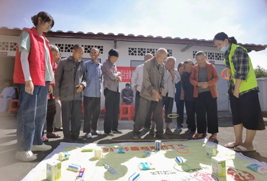 老人們在新時(shí)代文明實(shí)踐所一起做游戲