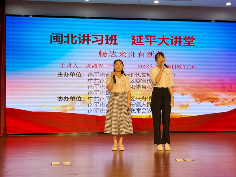 “來舟鎮(zhèn)作為‘火車?yán)瓉淼拿?zhèn)’,見證了一個時代的變遷?!毙v人陳淑俁、葉倩文分別從“這里,曾經(jīng)是‘入閩第一樞紐站’來舟火車站的所在地。”介紹到來舟鎮(zhèn)如何利用區(qū)位優(yōu)勢,加快產(chǎn)業(yè)轉(zhuǎn)型,實現(xiàn)了從以“路”強鎮(zhèn)走向以“工”強鎮(zhèn),以及生動講述來舟鎮(zhèn)東山溪之變,變出水美生態(tài)圖景的故事。