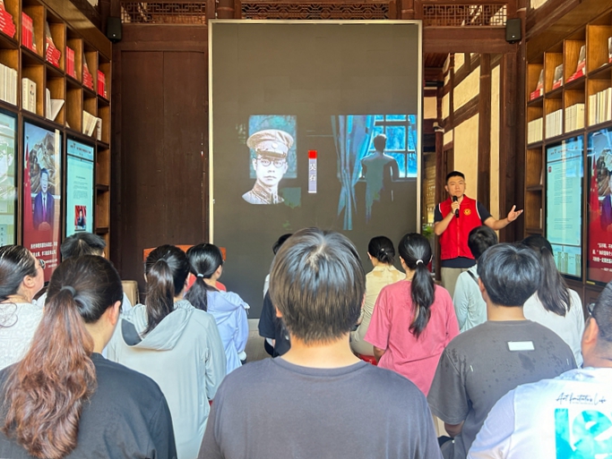 宣講員帶領(lǐng)眾人重回“密使一號”吳石烈士所處的無聲戰(zhàn)場 (洪山鎮(zhèn)供圖)