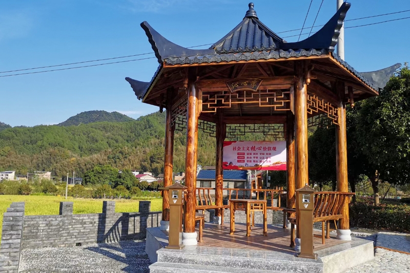 南平市煙草專賣局(公司)為松溪縣源尾村新建的特色涼亭。