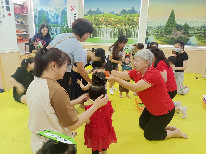 四年來,在鄭民紅的熏陶感染下,一批早教公益愛心志愿者紛紛加入了公益早教。每周末免費(fèi)開展0-3歲寶寶公益早教親子課和4-6歲幼兒卡爾思維游戲課程,在鄭老師和她的團(tuán)隊(duì)的努力下,班次也從2個(gè)發(fā)展到9個(gè),受益對象已達(dá)近千人,讓更多孩子真正享受到優(yōu)質(zhì)、前沿的學(xué)前教育。雖然團(tuán)隊(duì)日益龐大,但鄭老師不忘初心,始終堅(jiān)持把好每節(jié)公益課程的質(zhì)量關(guān),定期開展團(tuán)建活動、積極組織外出參觀學(xué)習(xí)、利用各種機(jī)會推廣先進(jìn)育兒理念。此外,她還常在各短視頻平臺分享嬰幼兒童謠、韻律手指操和公益活動花絮,將系統(tǒng)的、科學(xué)的育兒理念傾情奉獻(xiàn)給身邊的新手父母們。