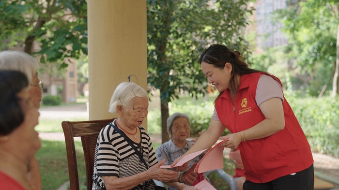 志愿者進(jìn)社區(qū)發(fā)放移風(fēng)易俗倡議書。長泰區(qū)委文明辦 供圖