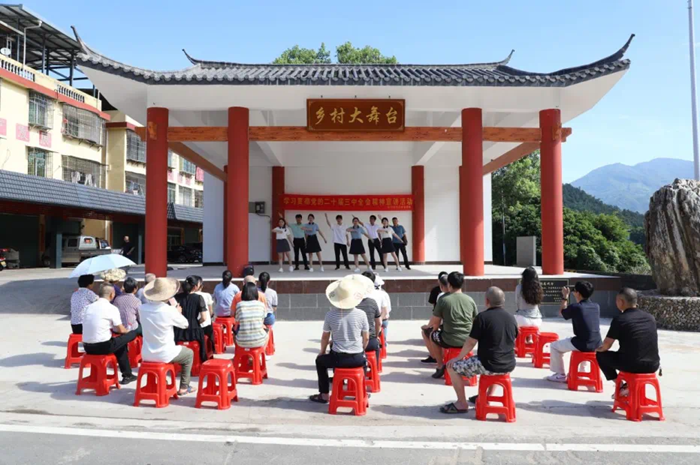 “黨的二十屆三中全會(huì)來(lái)召開(kāi),深化改革全面在,意義重大又深遠(yuǎn)……”在云水謠景區(qū)內(nèi),“習(xí)語(yǔ)靖聽(tīng)”土樓紅妹子宣講隊(duì)邊唱邊跳,結(jié)合快板、三句半、順口溜及說(shuō)唱等群眾喜聞樂(lè)見(jiàn)的方式,為景區(qū)村民及游客解讀黨的二十屆三中全會(huì)精神內(nèi)容,她們用接地氣的宣講方式贏得在場(chǎng)群眾的情感共鳴和精神共振。