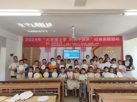 “手持扇柄,可以按照垂直入、旋轉入、Z字型入的方法將扇面浸入水中,等幾秒鐘,慢慢提起來……”伴隨一聲聲“哇”的驚呼,走進德化縣三班鎮(zhèn)蔡徑村新時代文明實踐站,可以看到孩子們在志愿者的指導下,一把把獨具特色的漆扇呈現(xiàn)在大家眼前。