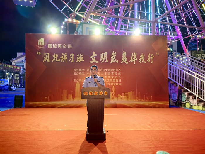 文明風(fēng)8月10日訊 為深入學(xué)習(xí)黨的二十屆三中全會(huì)精神,以更強(qiáng)舉措推動(dòng)精神文明建設(shè)取得新成效。8月6日,武夷山市武夷街道新時(shí)代文明實(shí)踐所、八角亭社區(qū)新時(shí)代文明實(shí)踐站在海洋公園廣場(chǎng)隆重舉辦“閩北講習(xí)班·文明武夷伴我行”活動(dòng)。