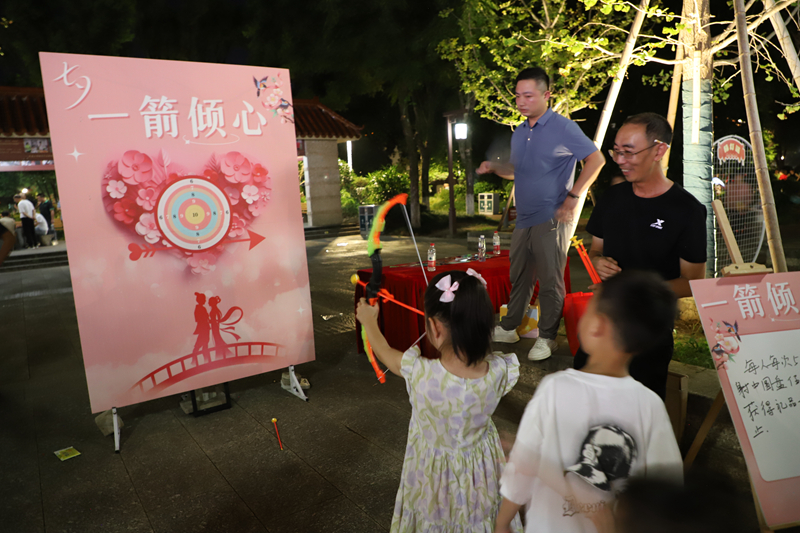 活動(dòng)還穿插了“七夕節(jié)是在每年農(nóng)歷的幾月幾日”“創(chuàng)建全國文明城市我們市民應(yīng)該做什么”等8個(gè)互動(dòng)有獎(jiǎng)問答,安排了猜燈謎、漆扇體驗(yàn)、一箭傾心等形式多樣群眾性文體活動(dòng)。通過文藝晚會(huì)、猜燈謎、市民親手繪制扇子等多種方式傳遞傳統(tǒng)文化的魅力,調(diào)動(dòng)青年對(duì)傳統(tǒng)節(jié)日的熱情,引導(dǎo)青年體驗(yàn)傳統(tǒng)習(xí)俗,傳承傳統(tǒng)文化。