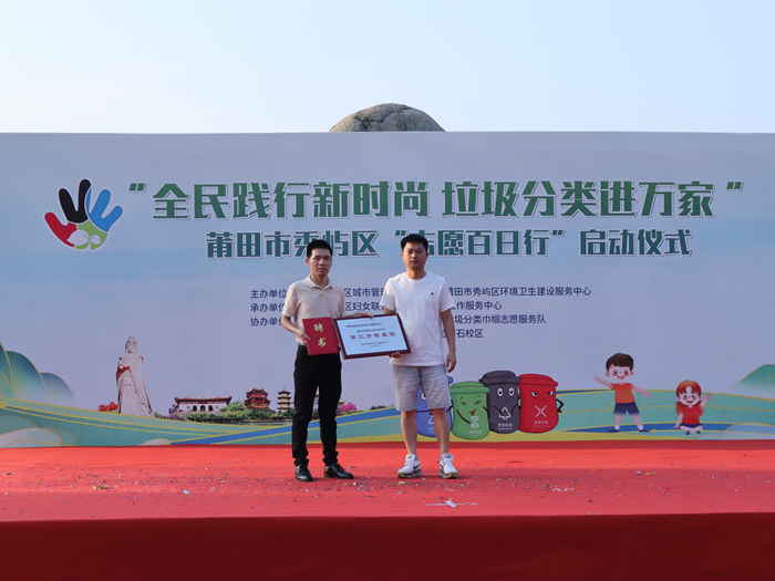 儀式現(xiàn)場,志愿者代表發(fā)出垃圾分類倡議,秀嶼區(qū)垃圾分類辦首聘沈彩虹等為秀嶼區(qū)生活垃圾分類環(huán)保講師,并聘任和合社會工作服務(wù)中心為秀嶼垃圾分類“第三方智囊團(tuán)”?;顒幼詈螅鱿I(lǐng)導(dǎo)共同啟動“全民踐行新時尚 垃圾分類進(jìn)萬家”莆田市秀嶼區(qū)“志愿百日行”儀式。