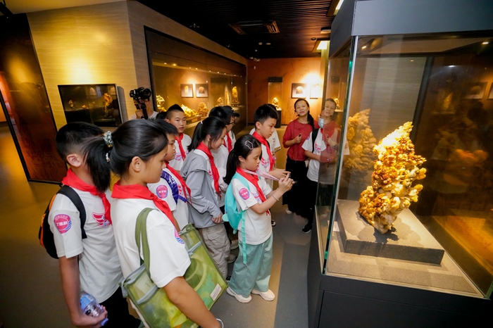 活動第二站,研學(xué)隊(duì)伍來到了中國壽山石館。中國壽山石館2002年正式對外開放,是國內(nèi)唯一的國有壽山石專題博物館。在壽山石館新思想學(xué)習(xí)教育實(shí)踐基地,好少年們通過傾聽講解員的細(xì)致解說、觀看《國石瑰寶·文化自信》紀(jì)錄片,深入了解了壽山石資源保護(hù)、壽山石雕刻技藝傳承、壽山石文化產(chǎn)業(yè)發(fā)展等。國石館內(nèi)展出的件件壽山石精品,讓孩子們?nèi)轿坏仡I(lǐng)略壽山石的歷史文化和藝術(shù)魅力,更深刻地感受國石文化根源及其精神脈搏,也激發(fā)了他們傳承與發(fā)揚(yáng)優(yōu)秀傳統(tǒng)文化的責(zé)任感。