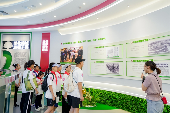 活動的第一站,晉安好少年們走進(jìn)了福州市紅廟嶺循環(huán)經(jīng)濟(jì)生態(tài)產(chǎn)業(yè)園區(qū),開啟了他們生態(tài)環(huán)保的探秘之旅。在“紅廟嶺·跨世紀(jì)的造福工程”展館內(nèi),在解說員的帶領(lǐng)下,孩子們通過豐富多彩的圖文展示,深入了解建設(shè)紅廟嶺垃圾綜合處理場的生動故事、紅廟嶺蝶變的過程,以及福州市創(chuàng)建國家生態(tài)文明建設(shè)示范市的創(chuàng)新探索。在展館的互動體驗(yàn)區(qū),孩子們通過3D投影、人機(jī)互動等方式詳細(xì)了解垃圾分類收集、分類運(yùn)輸、分類處置的知識,進(jìn)一步增強(qiáng)環(huán)保意識。