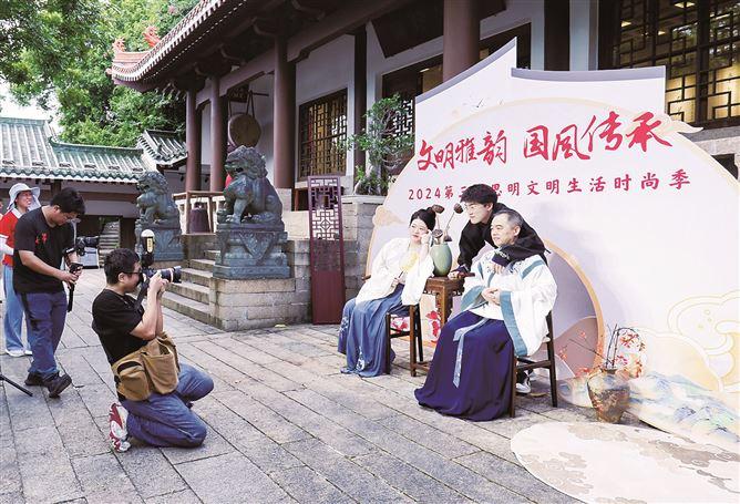 近日,2024第三屆思明文明生活時尚季系列活動之“我們的節(jié)日·七夕——文明雅韻 國風(fēng)傳承”在位于鴻山公園的新時代文明實踐基地舉行?;顒訉⑽拿魃顣r尚與浪漫的傳統(tǒng)佳節(jié)相融合,通過禮遇道德模范、聆聽成功故事、國風(fēng)雅集等環(huán)節(jié),弘揚中華優(yōu)秀傳統(tǒng)文化,為建設(shè)中華民族現(xiàn)代文明注入新的活力與內(nèi)涵。思明區(qū)新時代文明實踐中心(所、站)、各文明單位同步開展近百場活動。