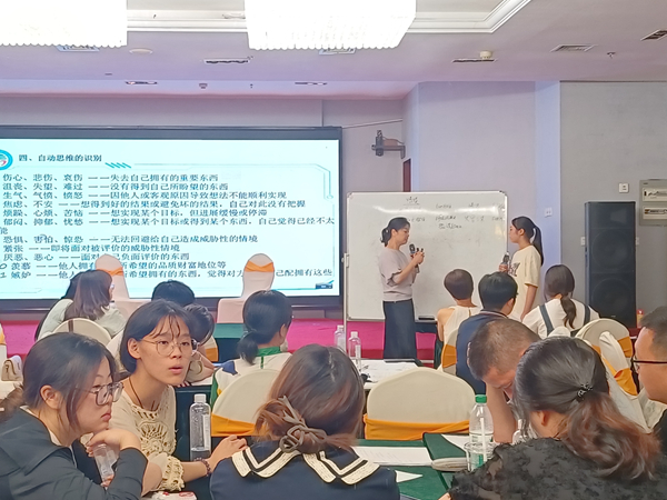 培訓(xùn)邀請了國家二級(jí)心理咨詢師鄭建明與傅虹蘋前來授課。鄭建明老師講授繪畫心理學(xué),這是一種互動(dòng)性、體驗(yàn)性及對人群的聯(lián)結(jié)性更加凸顯的教學(xué)方式。通過實(shí)際案例,深入淺出地闡釋了繪畫心理學(xué)的基本理論及在咨詢過程中的應(yīng)用,相較于傳統(tǒng)課堂對抽象理論知識(shí)的講授與學(xué)習(xí),繪畫心理學(xué)更注重回歸到每個(gè)人的真實(shí)體驗(yàn)。傅虹蘋老師介紹認(rèn)知行為療法,通過通俗易懂的語句和例子相結(jié)合,讓學(xué)員們更好地察覺自我,在感知、思考、行動(dòng)的時(shí)候能準(zhǔn)確地發(fā)現(xiàn)自我。課堂上,學(xué)員們積極配合老師,并提出所遇到的困惑和問題,老師耐心詳盡解答。