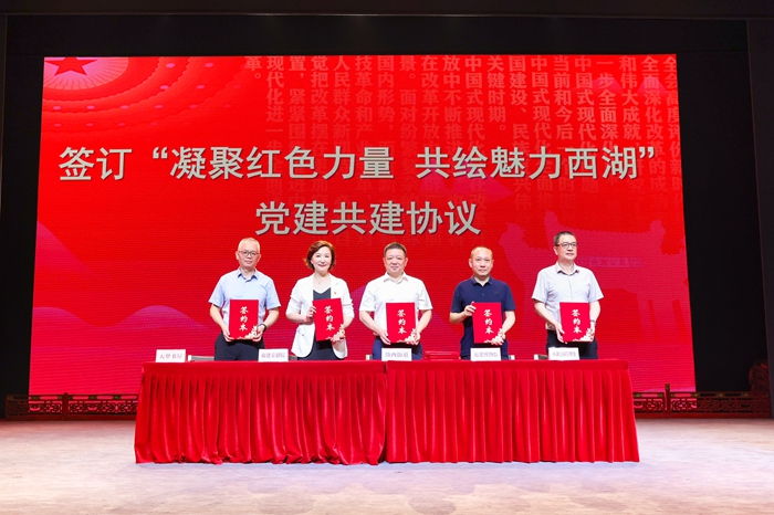 簽訂“凝聚紅色力量 共繪魅力西湖”黨建共建協(xié)議。鼓樓區(qū)委宣傳部供圖