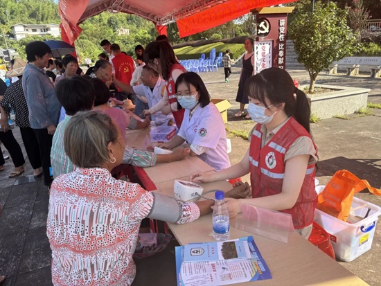 醫(yī)務志愿者為村民量血壓、測血糖。雷峰鎮(zhèn) 供圖