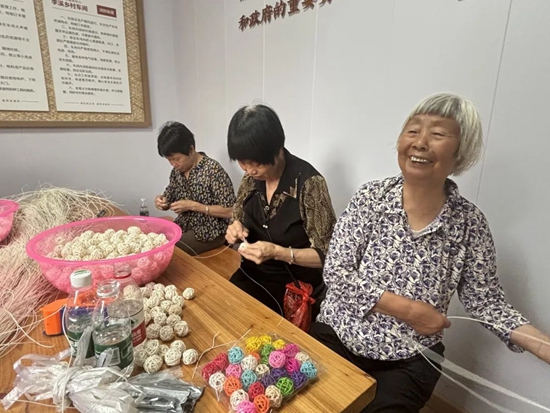 走進李溪村“鄉(xiāng)村車間”就能聽見陣陣爽朗笑聲,幾位老人圍坐在一起,正熟練纏繞著手中的香薰球,一圈又一圈,只需幾分鐘的時間,就能夠完成一道加工工序。鄭秋月說:“這些手工活做起來也不怎么費力氣,完成一個有7分錢的收入,速度快的時候一天能賺個四五十元,在養(yǎng)老中心有人談心聊天、有飯吃,還能賺錢。”
