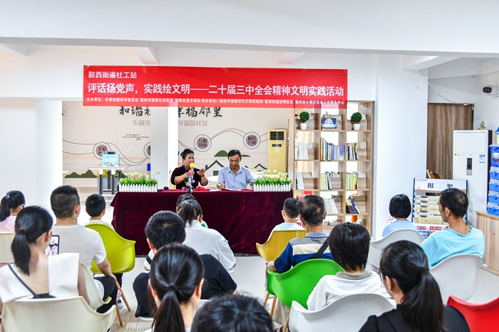 鼓西街道新時(shí)代文明實(shí)踐所舉辦“評(píng)話揚(yáng)黨聲實(shí)踐繪文明”文明實(shí)踐活動(dòng),邀請(qǐng)福榕評(píng)話藝術(shù)中心的老師們用獨(dú)具特色的福州評(píng)話講述黨的二十屆三中全會(huì)報(bào)告內(nèi)容,以接地氣的生動(dòng)語言講述了城市發(fā)展、民生幸福等內(nèi)容,為居民群眾帶來一場別出心裁的宣講活動(dòng)。