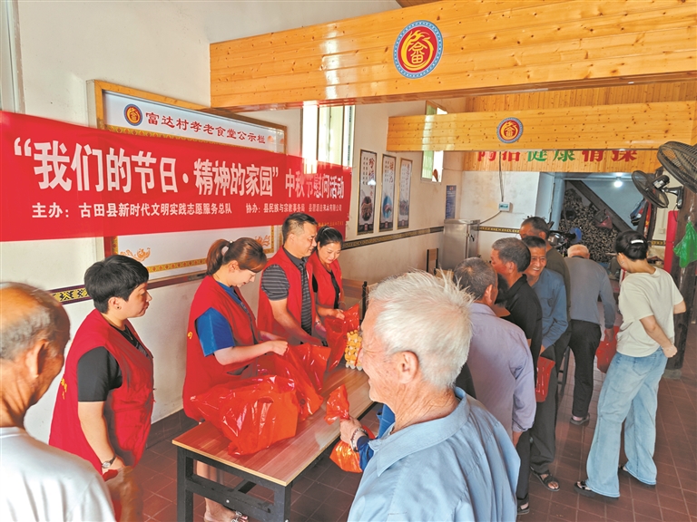 古田縣新時(shí)代文明實(shí)踐志愿服務(wù)總隊(duì)在平湖鎮(zhèn)富達(dá)村孝老食堂開展“我們的節(jié)日·精神的家園”中秋節(jié)慰問活動(dòng)