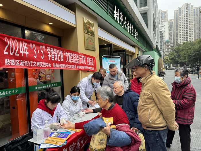 居民群眾前往樹兜幸福里參與愛心義診文明實(shí)踐活動。鼓東街道供圖