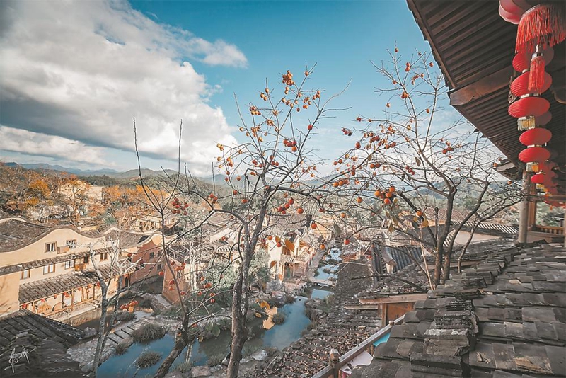 火紅柿子映襯下的屏南縣熙嶺鄉(xiāng)四坪村 福建日報發(fā) 范一辛 攝