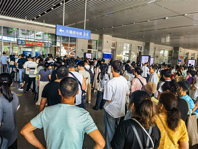 中國鐵路南昌局集團(tuán)有限公司福州車務(wù)段寧德站候車室迎來客流高峰(王勇富 攝)