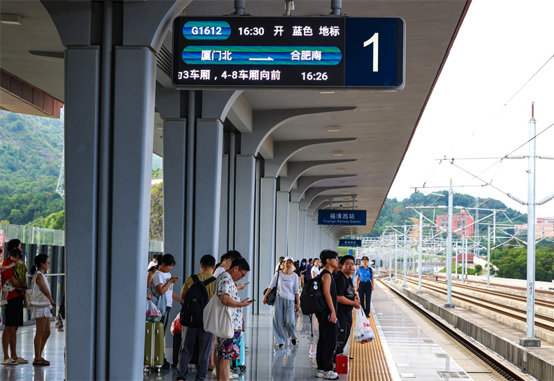 中國鐵路南昌局集團(tuán)有限公司福州車務(wù)段福清西站站臺(tái)上旅客正在等候列車 (王勇富 攝)