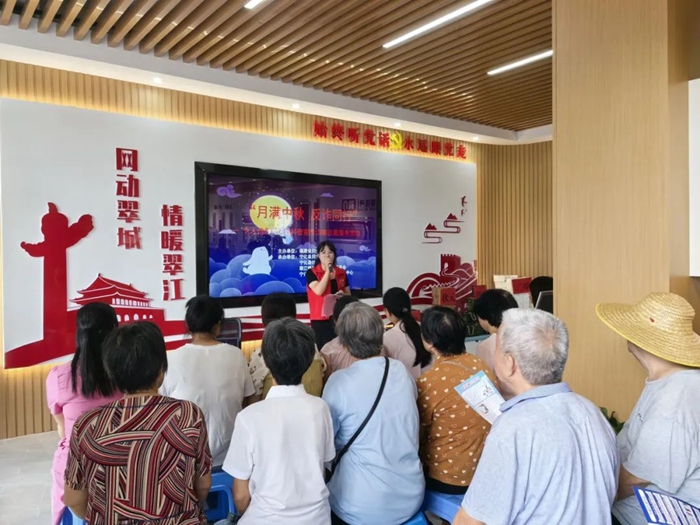 泰寧縣城東社區(qū)新時代文明實踐站聯(lián)合多個單位共同開展“月滿中秋,情滿杉城”慶中秋主題活動,為前來參加活動的20余位社區(qū)老人送出溫暖和關(guān)愛。活動在《八月中秋看月亮》《我們泰寧人》等一首又一首的山歌中拉開帷幕,表演者們用嘹亮的歌聲帶動起節(jié)日的喜慶氛圍。隨后,還進行了泰寧縣地名文化故事宣講,讓社區(qū)老人們在聆聽故事的同時,更加深入地了解泰寧文化內(nèi)涵。