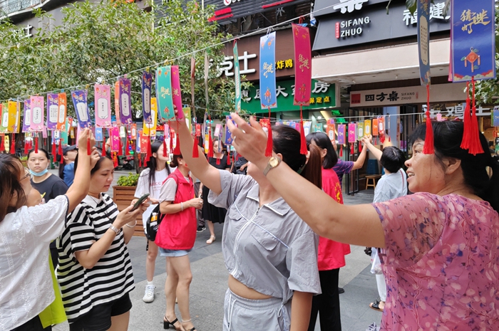 “漆扇制作之前經(jīng)常在網(wǎng)絡(luò)上看到,感覺(jué)蠻好的,沒(méi)想到今天家門(mén)口就有這樣的體驗(yàn)活動(dòng)”市民鄭小姐表示,“希望以后能經(jīng)常舉辦這類活動(dòng),能和孩子一起參與,讓孩子們能多了解、體驗(yàn)我們的傳統(tǒng)文化”。猜燈謎、玉兔投壺、趣味套圈及DIY燈籠制作、宋代點(diǎn)茶文化體驗(yàn)等,吸引了眾多市民參與,氣氛十分熱烈。