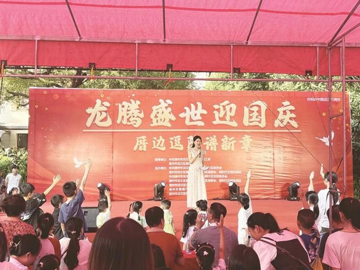 9月21日,龍文區(qū)藍田街道龍騰社區(qū)新時代文明實踐站、小港社區(qū)新時代文明實踐站攜手向陽花社工組織開展“龍騰盛世迎國慶,厝邊逗陣譜新章”國慶節(jié)文藝匯演活動?;顒釉诖禾炝x演團帶來的舞蹈《黨旗更鮮艷》中拉開序幕,演員們充滿力量感與藝術(shù)感的動作令人目不暇接,而由社區(qū)小朋友們帶來的舞蹈《像你這樣的朋友》,讓大家感受到了新時代兒童洋溢著的朝氣與活力。主辦方還設(shè)置了知識問答互動環(huán)節(jié),現(xiàn)場的觀眾歡欣踴躍,紛紛展示自己的知識儲備。大家在輕松愉快的氛圍中共同學(xué)習(xí),增長知識。