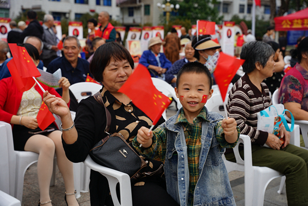 舞臺(tái)上,演員們傾情演繹,觀眾們則隨著音樂(lè)節(jié)奏揮舞著手中的國(guó)旗,現(xiàn)場(chǎng)氣氛熱烈。演出中還穿插了文明知識(shí)有獎(jiǎng)問(wèn)答環(huán)節(jié),觀眾們便爭(zhēng)先恐后地舉手回答,準(zhǔn)確回答了關(guān)于重陽(yáng)節(jié)習(xí)俗的問(wèn)題,贏得了現(xiàn)場(chǎng)掌聲一片。