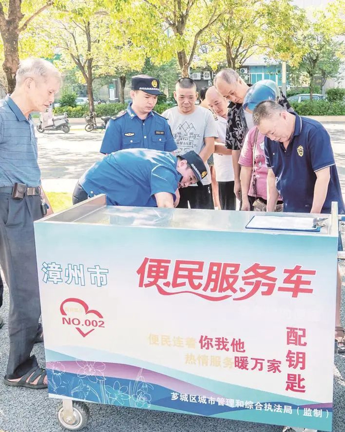 今年6月起,薌城區(qū)城管執(zhí)法局召開(kāi)兩次座談會(huì),召集轄區(qū)內(nèi)現(xiàn)有的34位便民服務(wù)車攤主了解需求,敲定服務(wù)車設(shè)計(jì)圖、聯(lián)系制作公司。