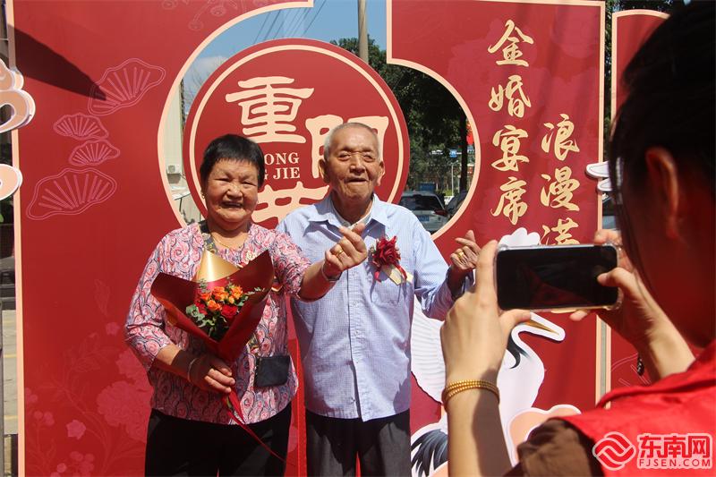 金婚夫妻“比心”秀恩愛(東南網記者 李霖 攝)
