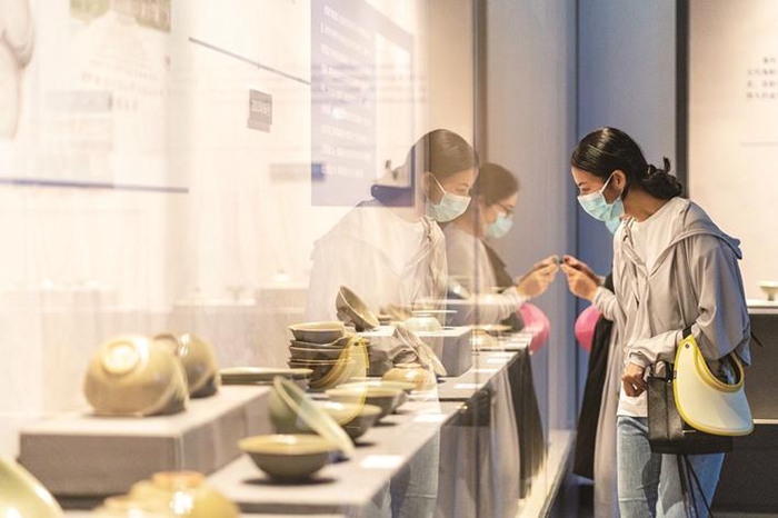 市民欣賞圣杯嶼水下考古發(fā)掘的精美瓷器(資料圖片)