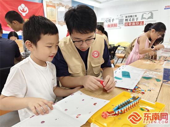 用樂高積木組裝“龍舟”(集美街道新時代文明實踐所、站供圖)