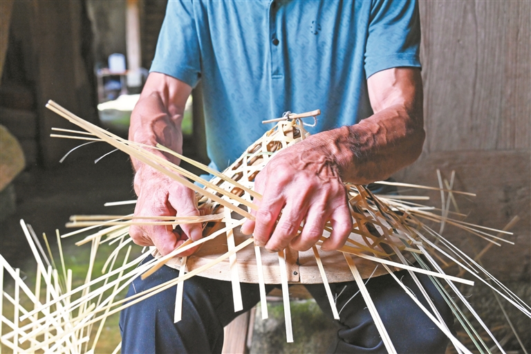 竹篾在手藝人的指尖翻轉(zhuǎn)下變成精美斗笠