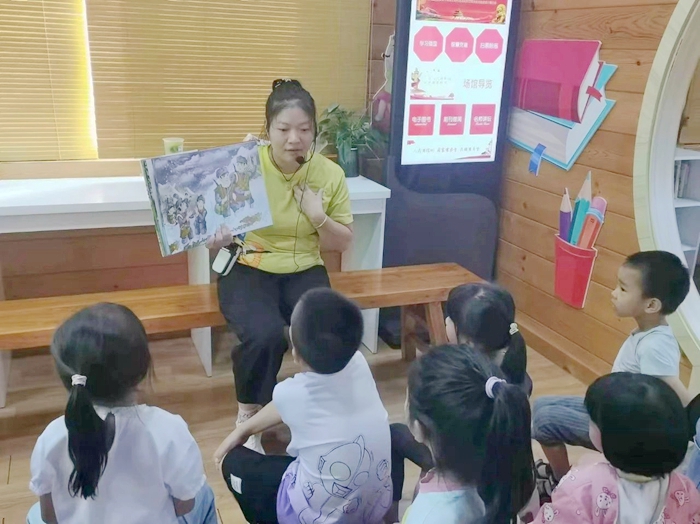 老師為小朋友講解繪本故事《長征路上紅小丫》