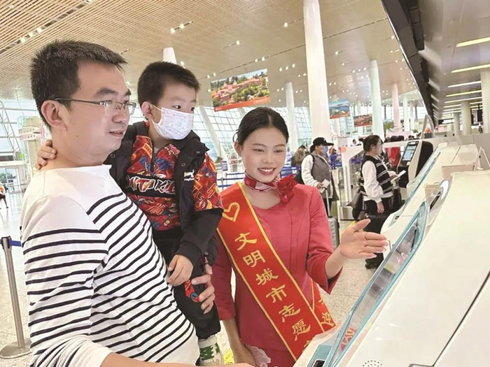 在廈門,不論在火車站還是景區(qū),總有“紅馬甲”志愿者迎上前,為游客服務(wù)。(廈門市委文明辦供圖)