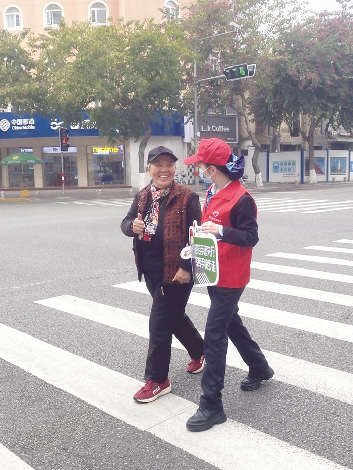 廈門市委文明辦倡導(dǎo)開展“招招手、您先行,揮揮手、快步走”志愿服務(wù)活動,街頭多了一道“禮讓斑馬線”的文明風(fēng)景線。(廈門市委文明辦供圖)