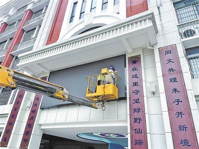 專業(yè)檢測(cè)隊(duì)伍進(jìn)校園,嚴(yán)格檢測(cè)LED顯示屏、展示板等戶外廣告設(shè)施。(同安區(qū)城市管理和綜合執(zhí)法局 供圖)