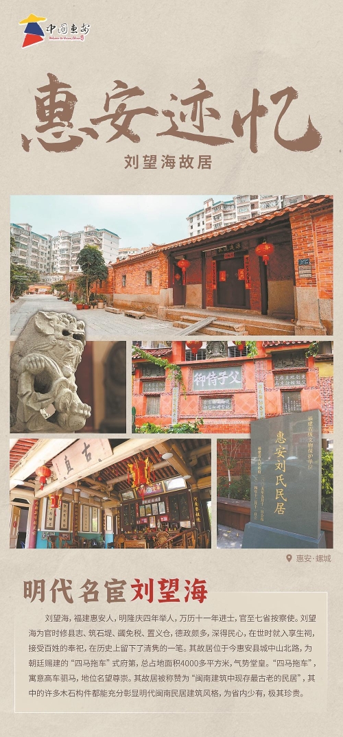 東南網(wǎng)11月6日訊(本網(wǎng)記者 林杰 閩南網(wǎng)記者 吳德月) 日前,惠安縣推出“惠安跡憶”主題系列海報(bào),內(nèi)容涵蓋惠安縣眾多歷史地標(biāo)和文化遺跡,如王潮墓、劉望海故居(上圖)、弘一法師舊居、青山宮、青龍橋、辜氏祖厝、筆架寺等,通過圖文并茂的方式展示這些遺跡的現(xiàn)狀、歷史故事和文化意義。