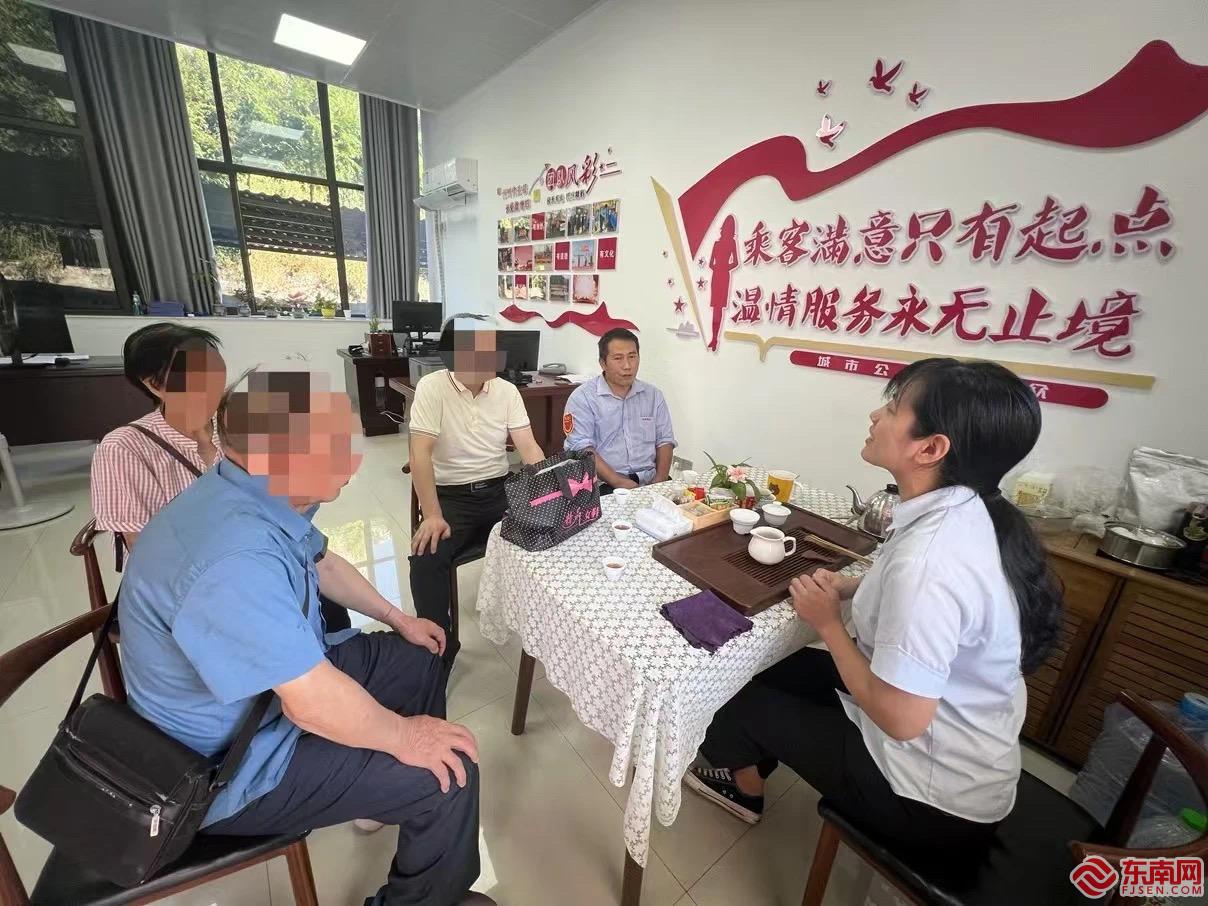 乘客在建陽公交公司服務(wù)管理部辦公室領(lǐng)會(huì)遺失的十萬元現(xiàn)金。建陽公交公司 供圖