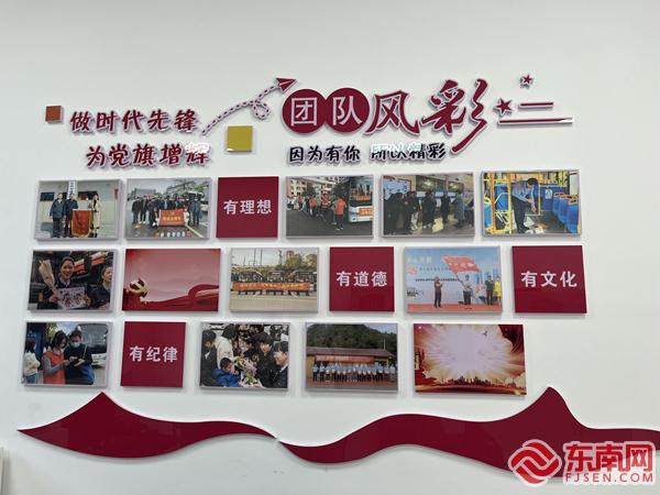 建陽公交公司里的團(tuán)隊(duì)風(fēng)采展示墻,不斷提高駕駛員集體榮譽(yù)感。建陽公交供圖
